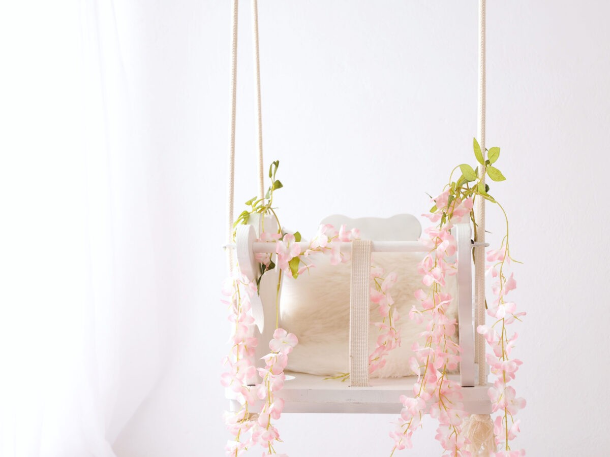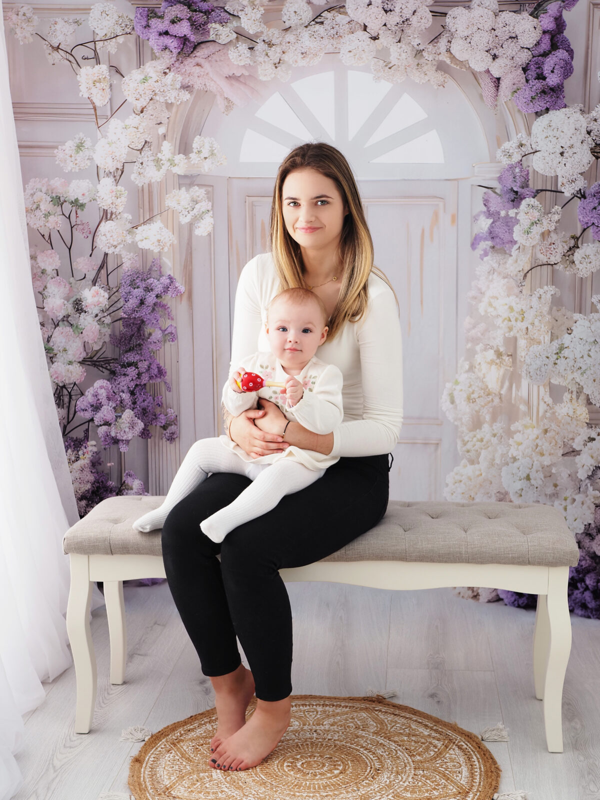 🟣 Czwarta aranżacja to scenka kwiatowa. Wykonuję na niej ujęcia rodzinne, dziecięce, portretowe.